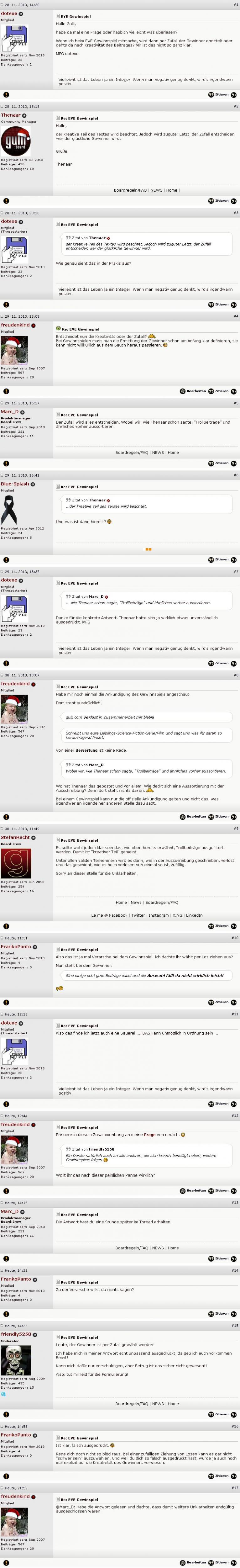 Zum ewigen Gedenken hier ein Foto des EVE-Threads, Stand 22:35 h.